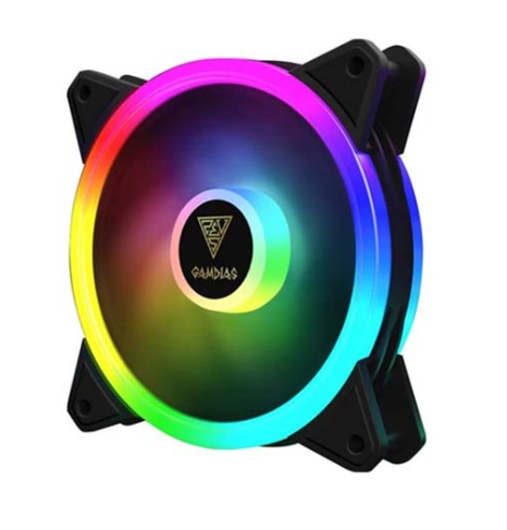 CHIONE M2 takes a Trio-loop design with three fully addressable RGB lighting rings around the front, back, and center of the fan.