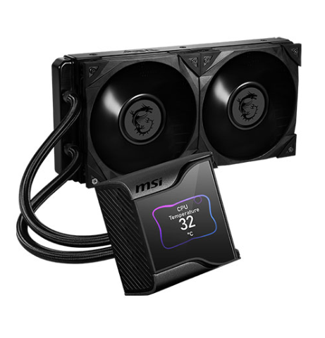 -The MEG CORELIQUID S Series comes with a 2.4” IPS display capable of displaying hardware information, GIF, MP4, photos, texts, and live weather information.